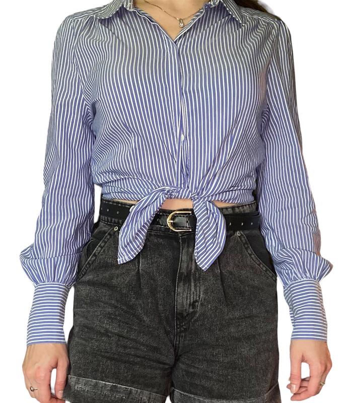легка синя сорочка в білу смужку стан речі хороший довжина рукава 61см довжина виробу-58см ОГ-44см ширина плеча-36см