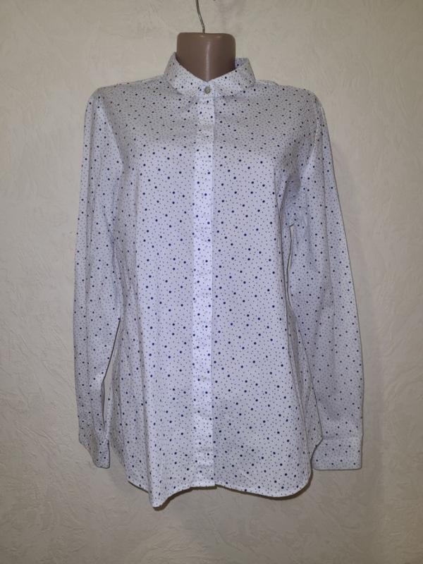 Сорочка біла, принт в маленький горощок та крапочку. Вимірювання на фото