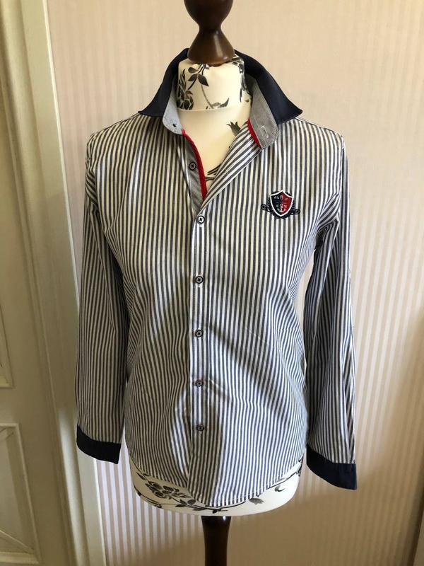 Класична сорочка з латками, в смужку, з емблемою