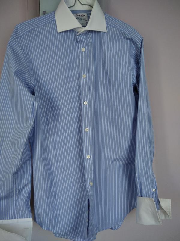 голуба, білий комірець та манжети, довжина- 73,рукав-59 + 15 манжети, плечі- 48,пог-55