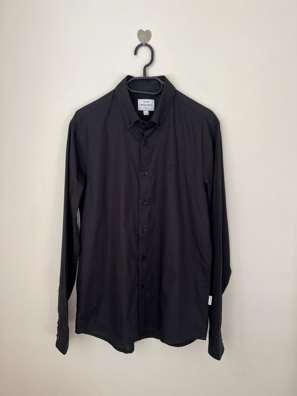 Стильна , брендова сорочка чорного кольору На груді вишит логотип бренду Збоку флажок з логотипом бренду Натуральна, приємна до тіла тканина Стан ідеальний Заміри Довжина-71 П.о.г-54 Рукав-65 Плечі-41