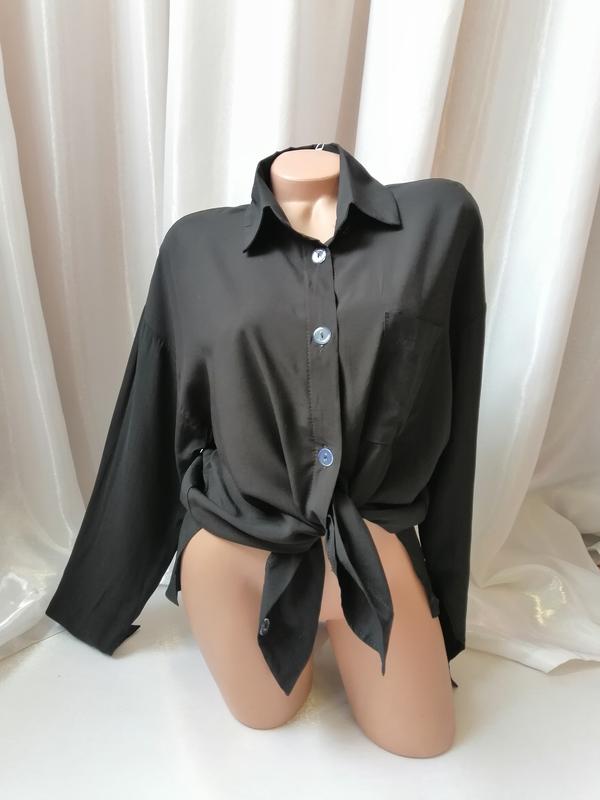 Хлопковая рубашка оверсайз с разрезами по бокам в наличии цвет чорний угольный , насыщенны...