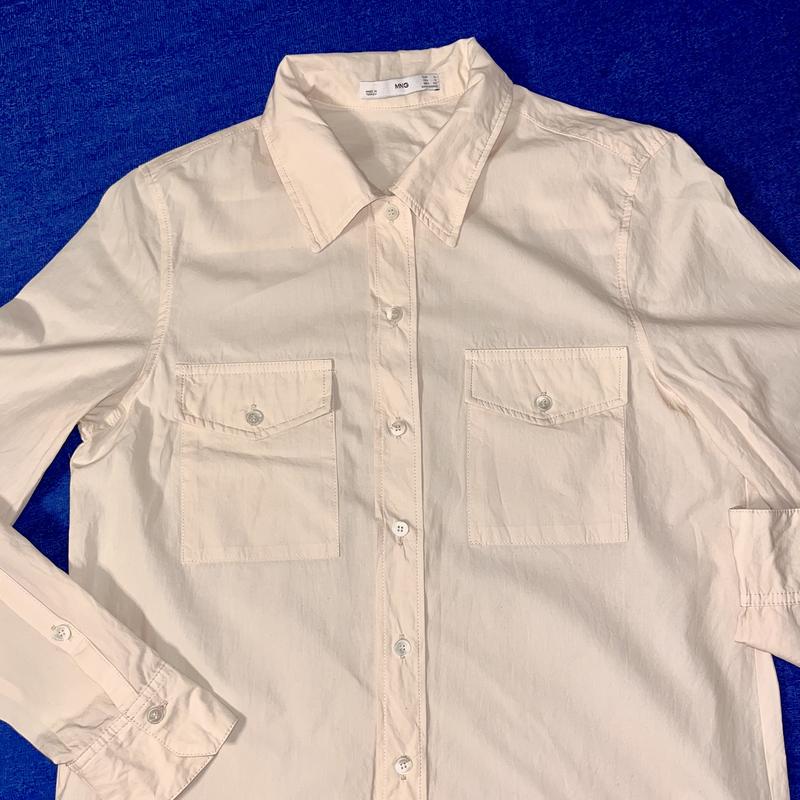 Бавовняна сорочка з тонкої тканини манго. Колір світло персиковий Стан - нова річ. Купувалась в магазині, проте жодного разу не була вдягнена. Бірка не залишилась Поечі 39 см, рукав - 60 см, пог - 49 см, довжина сорочки - 61 см