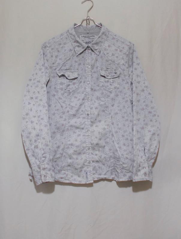 Сорочка в ідеальному стані. Тканина середня (300 грамів), міцна, світло-сіра в дрібний квітковий принт. Складний крій у плечах, у низ кокетки вшита тасьма, шви призбирані, приталений фасон, ґудзики під перламутр із гравіюванням чергуються з кнопками, на полі фірмова вишивка, внизу бічних швів вставлена тасьма, якою можна їх призібрати. На оф сайті подібні сорочки варті 50 Склад: 100% бавовна Мерки (на бирці 40): плечі 42 см НОГ 54 см ПОТ 50 см низ 56 см рукав 64 см довжина 71 см