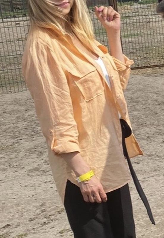 Сорочка персикового кольору, льон 100%, в гарному стані. Довжина по спині 73, пог53, рукав 58, плечі 41