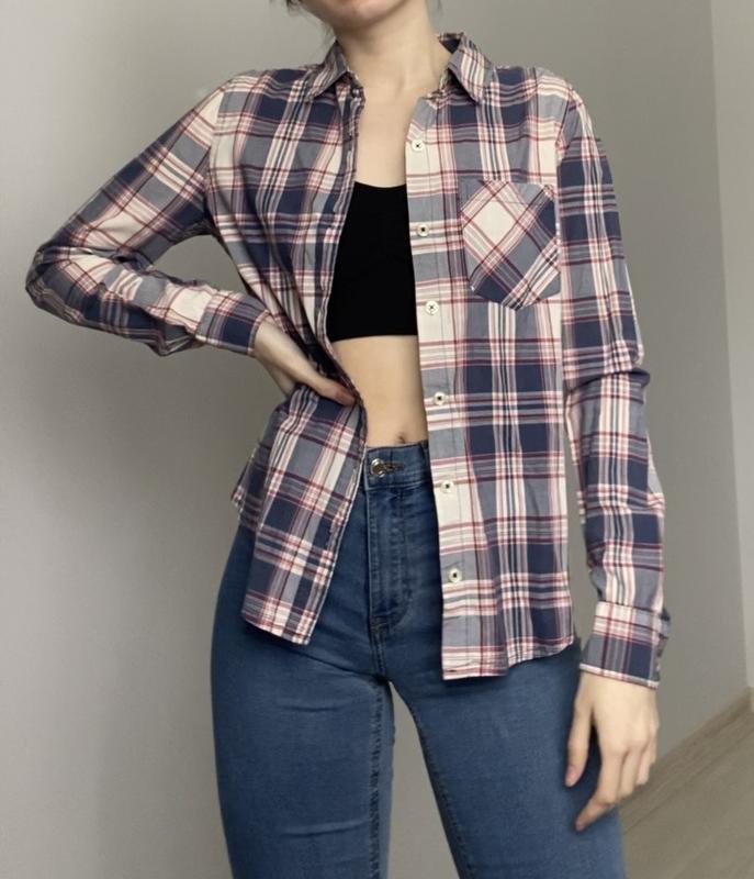 Сорочка в клітинку. Приємна до тіла. на ґудзиках. Стан задовільний