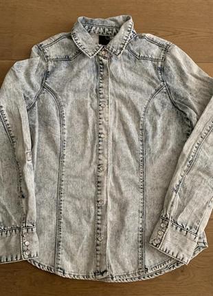 Плотная джинсовая рубашка в отличном состоянии, очень стильная и качественная, фирма bench. Замеры на фото.