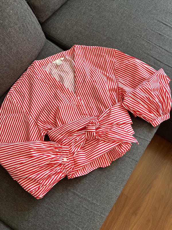 🏷 Шикарная блуза с объёмными рукавами H&M красивый V вырез. Можно по разному завязывать на поясе 🍒 Рр/ xs на ( s ) идеально