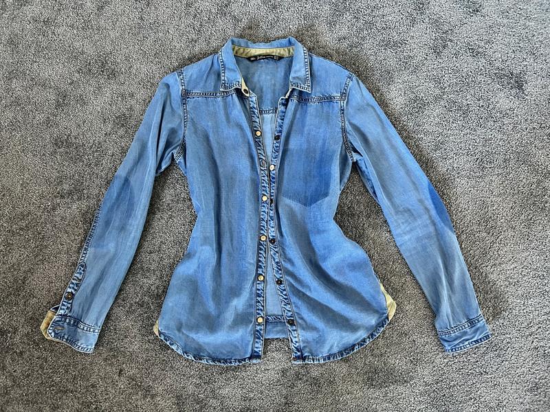 Легкая джинсовая рубашка, размер хс. Заміри на фото.