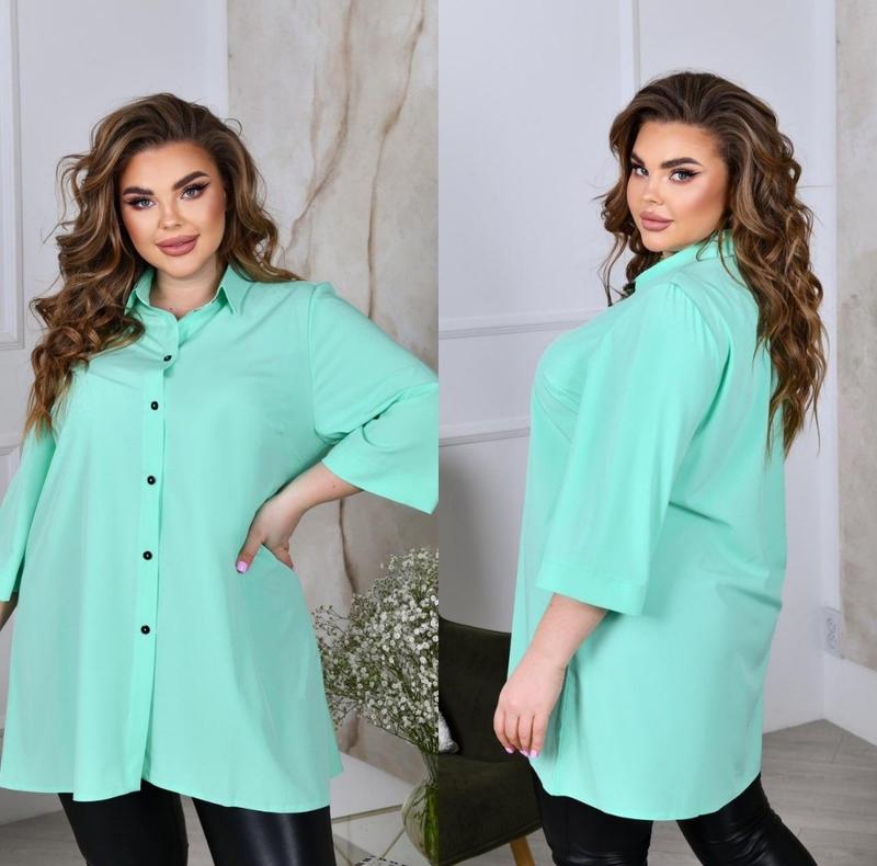 Цвет как на фото 5 Однотонная блузка Ткань: супер-софт Размеры: 60-62 Длина рубашки: 89 см Длина рукава от горловины: 47 см Обхват рукава: 50 см 60-62: ОГ 132 ОТ 146 ОБ 166 см