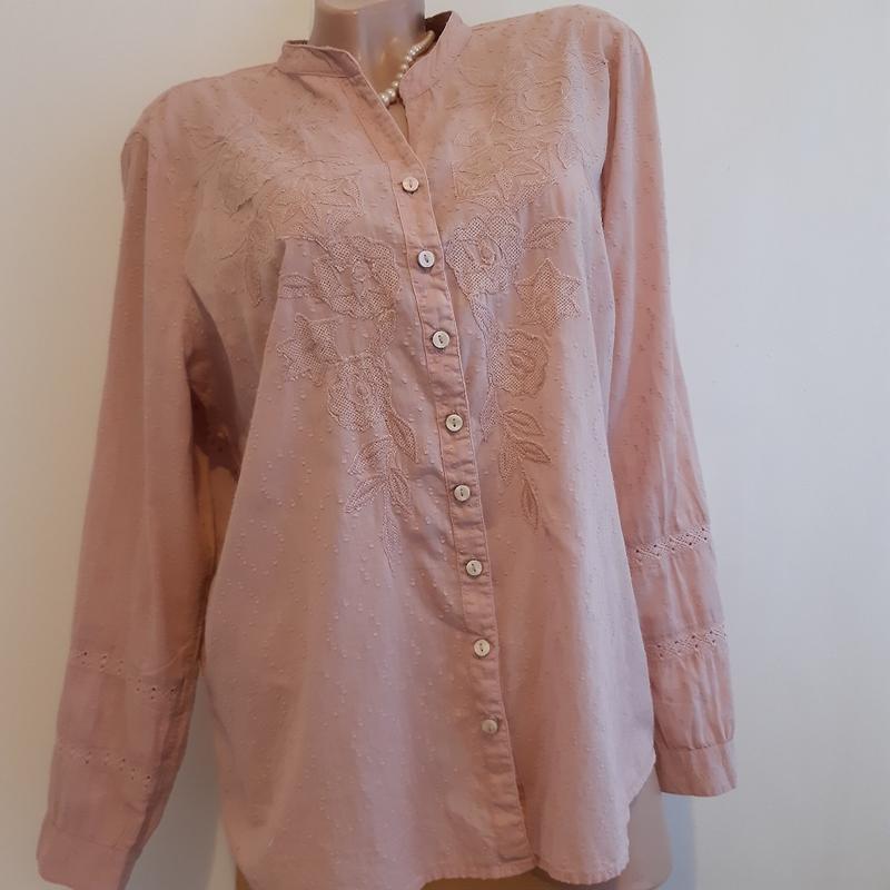 Колір як на 1 -му фото. Етикетка з розміром відсутня, орієнтуйтеся на заміри Довжина від плеча - 65-66см Боковий шов - 37см Довжина рукава - 57см ПО рукава вгорі - 19см, по нижньому мереживу - 14см Ш спинки - 44см ПО грудей - 60-61см ПО талії - 57см ПО низу сорочки - 59см Підійде на розмір 42