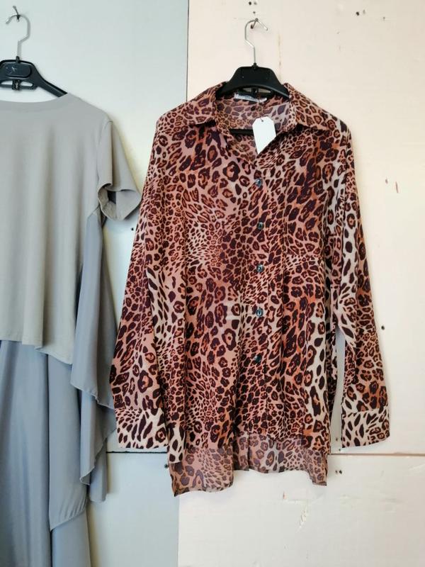 легка літня крепдешинова блуза сорочка хижий леопардовий принт Лео з розрізами з боків рубашка хищный леопардовый принт Лео с разрезами по бокам