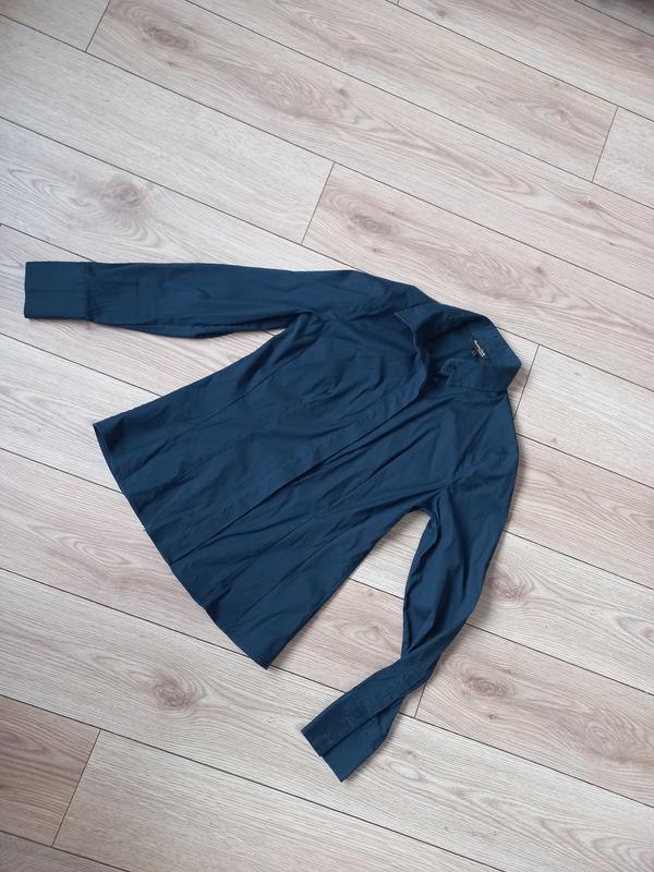 стан ідеальний на 3 фото тільки видно, що комір по краях колір на кантах втратив злегка колір темно синій ґудзики прихованого типу розмір С/М базова офіційно ділового стилю ціна 150 грн