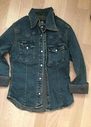 Джинсова сорочка, швидше куртка, тканина щільна, але тягнеться. Розмір насправді s.