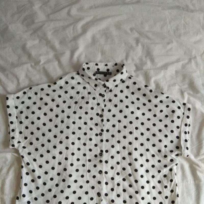 Продам сорочку в горошок у відмінному стані. Сорочка на 100 % складається з віскози. Розмір 44-46. Сорочка відмінно підійде для школи.
