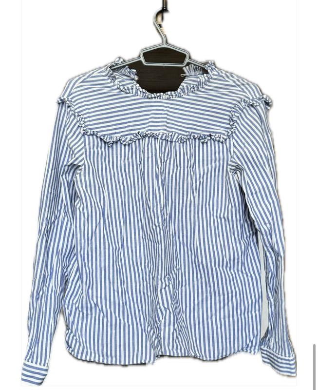 Бавовняна сорочка СОS у смужку з воланами у розмірі 46 (європейський). Має додатковий ґудзик. Без плям.