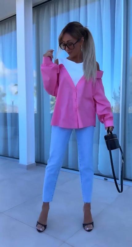 Сорочка - обманка арт. gr. 8393 Розмір: 42-44; 46-48; 50-52 Колір: біла, чорна, блакитна, малиновий Тканина смужка: софт турецький + котон білий, чорний Тканина однотон: віскоза білий + котон малиновий, блакитний Стильный сучасний образ це легко, базові кольори та весняні сорочки Ціна дроп/опт: 650 грн