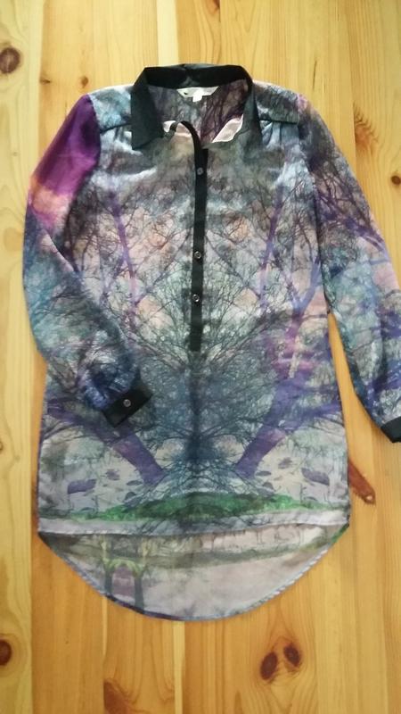 Легкое платье - рубашка. Задняя часть длиннее. Отлично носится с поясом и без.