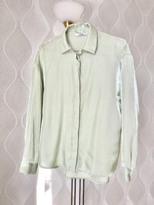 Світла зелена сорочка з блиском у розмірі S від бренду Only. Стан нової