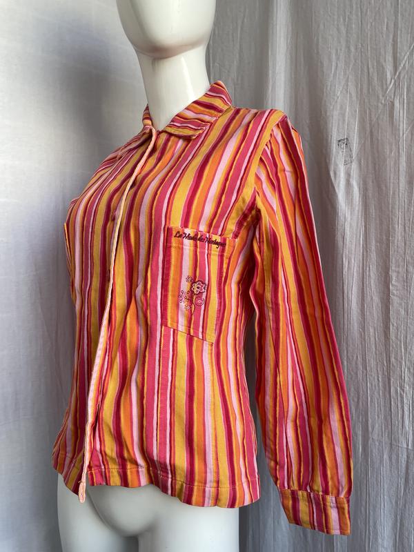 Дуже мила вінтажна сорочка La Mode des Montagnes На грудях має дві великі кишені з вишивками ниткою. Стан ідеальний, розмір 38 від Xs до S ( трохи тягнеться ). Є запасний ґудзик. Колір яскравий. Одчгннно для фото на манекен Xs ( 81 см/60 см ) Заміри Плечі: 35 см Довжина рукава: 54 см По грудях: 46 см Талія: 41 см Довжина по спині: 56,5 см Висота коміра: 6,5 см