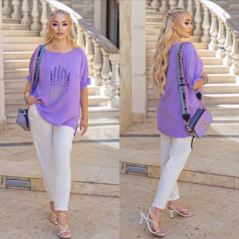 ‼️‼️‼️РОЗПРОДАЖ ‼️‼️‼️ 💙💛Зроблено в Україні💙💛 Мегастильна і ніжна кофтина з дуже гарним принтом в яку неможливо не закохатися😍 ✅Кофтинка ✅Мод.1879 ✅Ціна: 350 грн Тканина : льон жатка Бутилочний,лаванда: 46-48 Заміри: Рукав 25 см Розріз спереду 10 см Розріз по спинці -15 см ☑️46-48 Об’єм грудей -112 см Довжина -72 см Довжина по спинці- 77 см fashioncoton