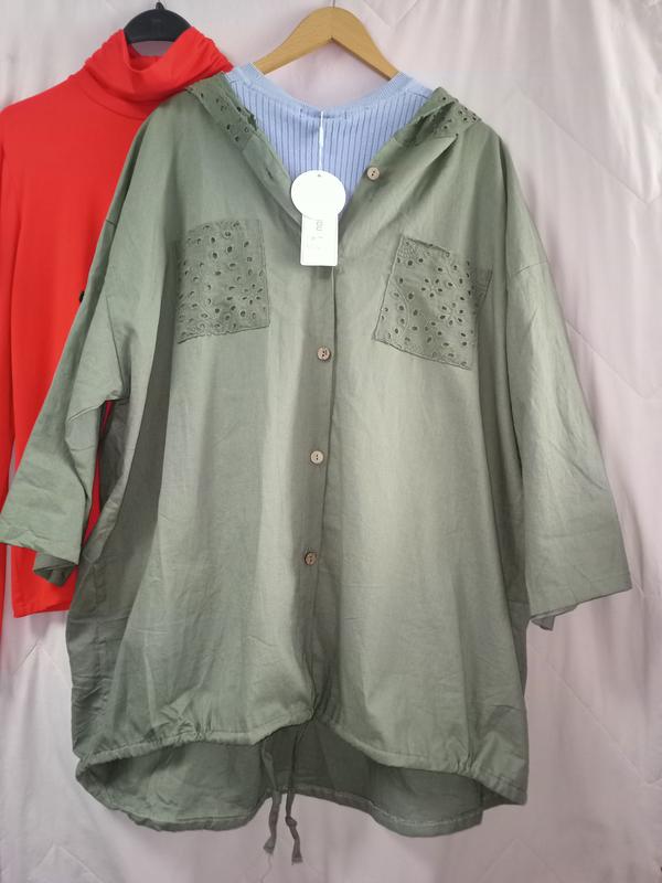 Нова, з навісною биркою. Країна дизайну Туреччина. Колір хакі(є до 56розм),графіт(є до 60розм) Дуже приємна легка (але нетонка) тканина, 55% льон, 45% котон, підійде на кілька розмірів. Шикарна модель — можна носити вільною, можна знизу стягнути куліскою, можливість підстебнути рукав. капюшон і кишені зроблені з перфорованої тканини з вишивкою. Поки є кілька розмірів уточнюйте, на яку треба. Кількість обмежена. Заміри більшого з наявних розмірів. ПОГ-70см НОС-70см Дл-80см Дл рук від горловини -60/40см Шир.плеч-67см