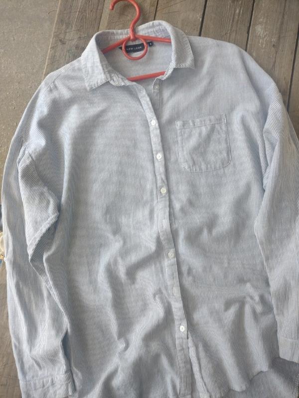стан чудовий 💕 відомий бренд розмір вказаний на бирочці 8 тканина приємна до тіла 💕 💯 котон, у дрібну смужку,на першому фото ,смужку не добре видно . довжина рукава регулюється модель, як оверсайз довжина ззаду 78 довжина спереду за планкою 65 см лінія плеча занижена 23 см довжина рукава 49,5 м пог. 53 см Усі питання уточнюйте перед оплатой