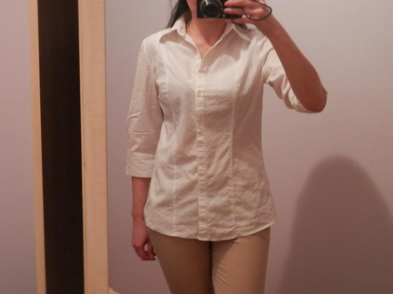 Якісна, приблизно L,під поясок-супер, мені велика ширина по плечах 38,під пахвами 48,ширина в районі талії 44-45,довжина по спинці 65 довжина рукава 42.на бирці-66 коттон,30 поліестер,4 еластан