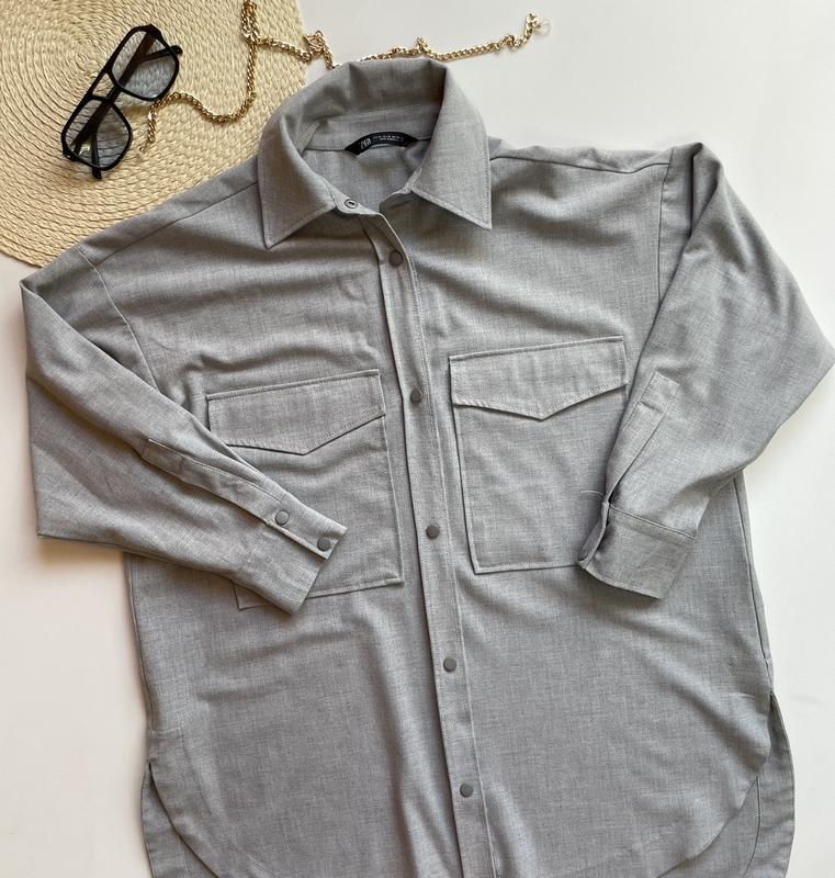Сорочка/рубашка zara світло сірого кольору подовжена оверсайз розмір m-xl