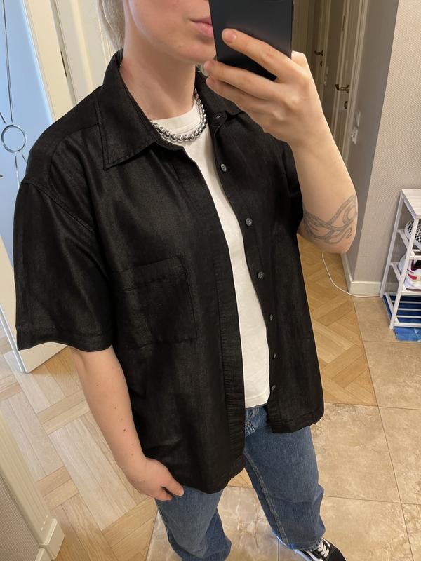 Oversized сорочка з вкороченим рукавом, дуже приємна тканина на дотик, має дорогий перелив.