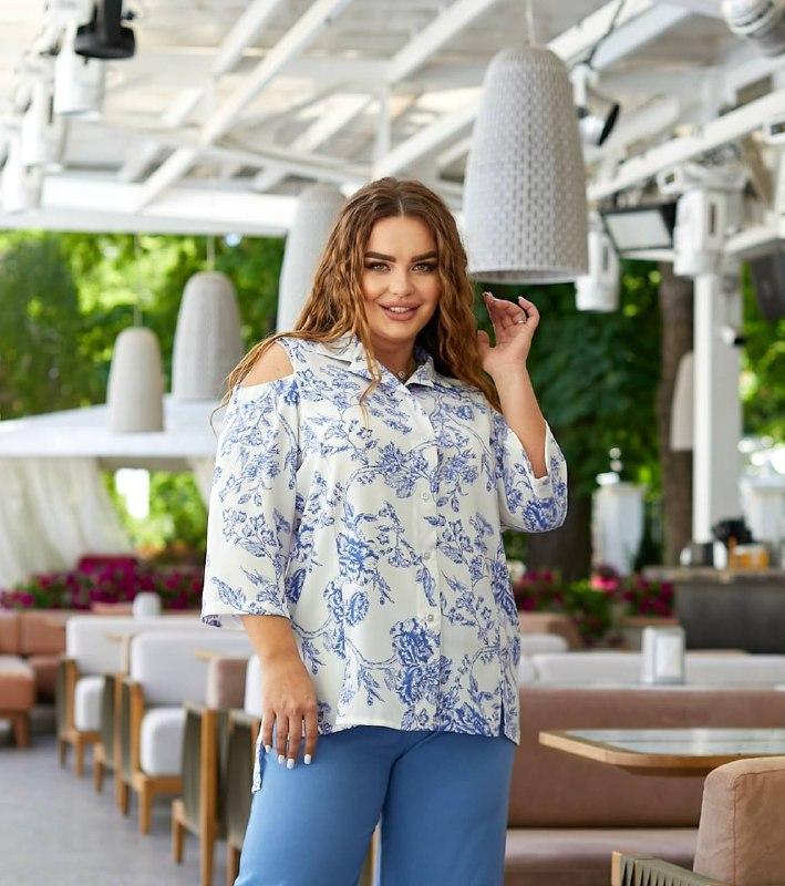 Тканина: Американський принтований креп. Преміум якості. Спереду застібка на ґудзиках Відкриті плечі Розміри: 50-52; 54-56; 58-60; 62-64. Заміри: 50-52 розмір О/Г-124 см Довжина рукава: 49 см Довжина переду: 68 см Довжина спинки:78 см 54-56 розмір О/Г-132 см Довжина рукава: 51 см Довжина переду:74 см Довжина спинки: 80 см 58-60 розмір О/Г-140 см Довжина рукава: 74 см Довжина виробу: 80 см 62-64 розмір О/Г-148 см Довжина рукава: 52 см Довжина переду:76 см Довжина спинки: 81 см сд