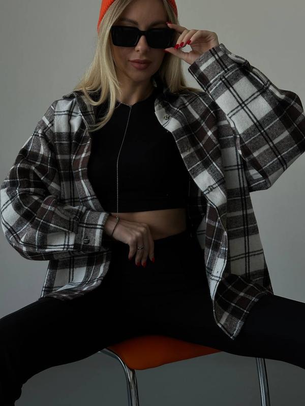 Топ продаж! Теплая рубашка, которая дополнит любой образ и легко стилизуется со всем Ткань: Турецкий кашемир клетка Цвета: беж,синий,шоколад,зеленый Размер: S-L (Универсал) Параметры изделия: Длина изделия-74 Длина рукава-73 ОГ-134 ОТ-132 ОС-136