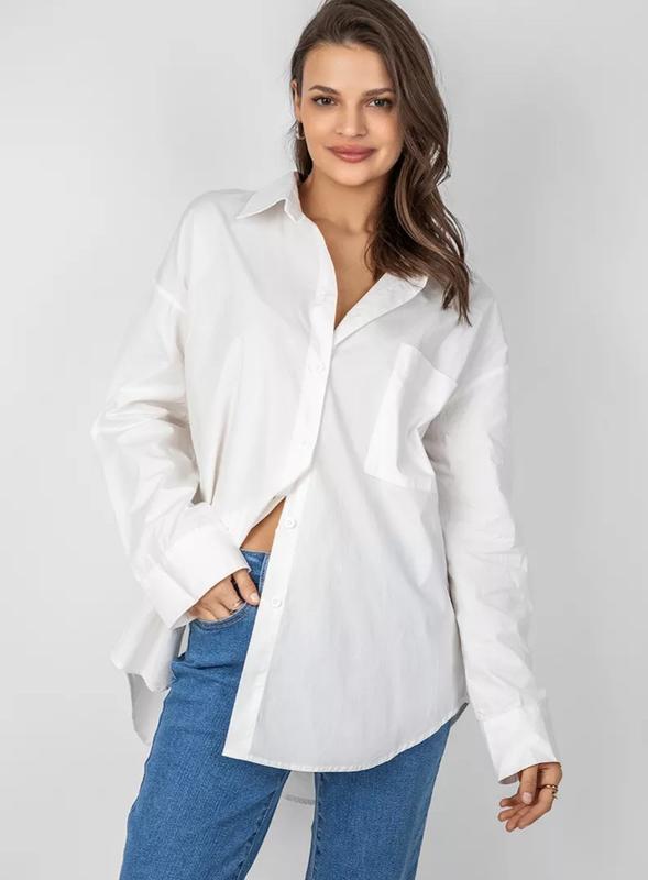 Новая, белоснежная Дуже трендова,зад довший с мужского плеча размер L, качественная приятная к телу ткань, мягушка На бирке не указан материал Можно на М кто любит большой оверсайз