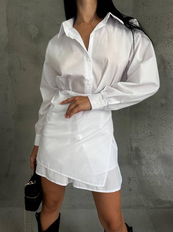 Сукня-сорочка оверсайз з баскою на запах. Баска зйомна, сорочку можна носити окремо 🔥 ▪️розмір: єдиний 42-48 ▪️колір: білий ▪️тканина: котон ▪️модель: 198 ▪️ціна: 690 грн sol