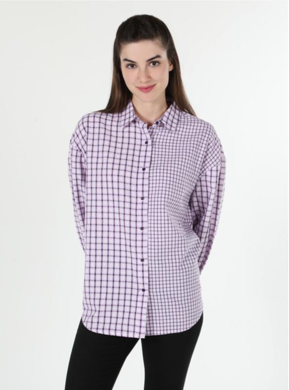 Сорочка бавовняна оверсайз жіноча colin's фіолетова в клітку