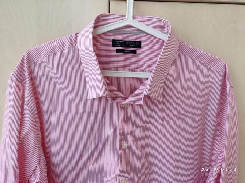 Рубашка женская Celio р-р XL. Состав ткани: хлопок 70%, 26% полиамид, 4% эластан. За счет эластана ткань тянется. Замеры: полуобхват груди 58, полуобхват талии 55, полуобхват бедер 59, рукав 66, плечи 46, длина 79. Состояние хорошее, без дефектов.