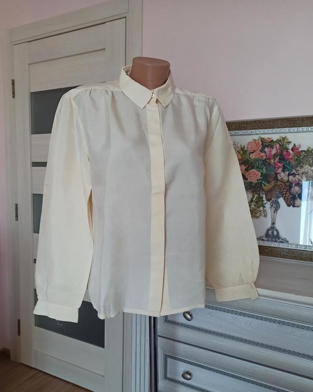 з натурального якісного щільного накрохмаленого шовку, тримає форму, красивий базовий колір, новий стан, без ознаків носіння розмір 44 довжина 60 плечі 43 рукав 58 пог 57