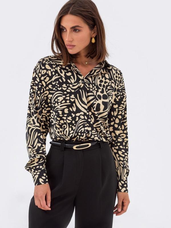 Сорочка із шовку "Армані" з трендовим принтом. Виріб із відкладним коміром. Довгі рукави зі спущеним плечем та широкими манжетами. Застібається на ґудзики. 📍Артикул: 45654 💫 ціна: 1205 грн 👗Розміри: 42, 44, 46, 48, 50, 52 📲 #блузки_мо
