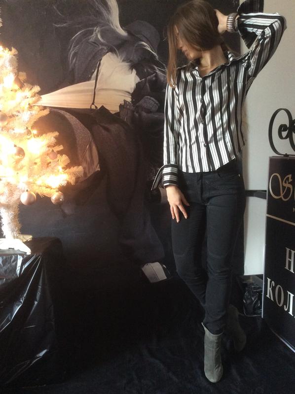 Стильная рубашка в черную и стальную полоску. На рукавах манжеты с отворотами. В идеальном состоянии. Размер S-M. Универсальная , подходит как офисный вариант и в тоже время праздничная... Отвечу на все вопросы.