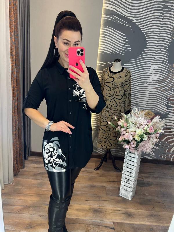 зручна і красива кофточка подовженого крою на ґудзиках спереду, практичними кишенями з боків і рукавами 3/4 виготовлена з трикотажу високої якості, прикрашеного ефектною термоаплікацією, вона має класний вигляд і підходить для роботи й відпочинку розміри 50, 52, 54, 56, 58, 60 довжина 76-78 см, об'єм грудей по виробу залежно від розміру 100-122 см, довжина рукава від шиї 55-57 см (довжина регулюється) код S 7184 A