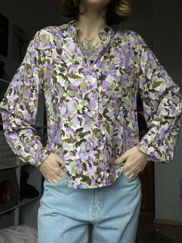 Приємна і мʼяка жіноча сорочка. На ґудзиках до середини виробу. Стан нової речі. Одягнена на S. Без знижки ціна на сайті 65 євро