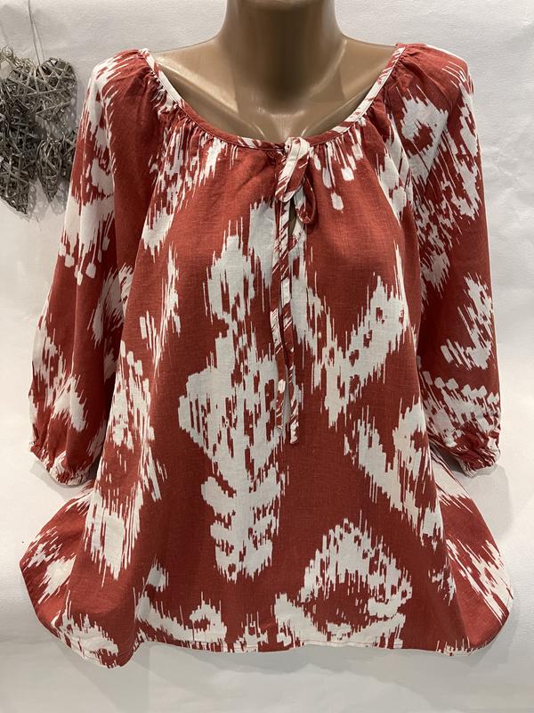 Пог 68, пот 70, поб 74, длина 64, рукав 52, пройма 35, бицепс 32, , цвет как на фото кирпичный и белый , , лен 55% , вискоза 45%, , качество отличное