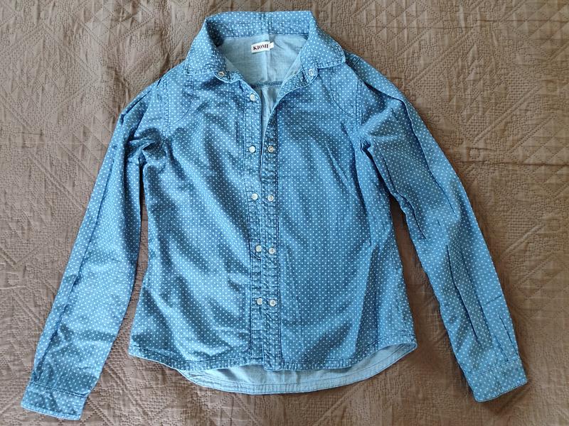 Джинсова сорочка в білий горошок. Розмір S, S-M , по бірці 38