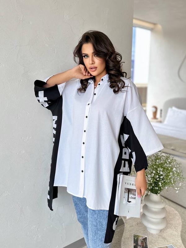 🕊NEW 🙌NEW 🕊 💥Хіт продажу🔥 Сорочка 🤑виробництво Туреччина 🇹🇷 🤑Фото та відео реал 🤑Розмір: Over size 🤑Тканина: поплін 🤑Колір: білий з салатовим, білий з чорним, чорний з білим Гарна якість Заміри Сорочка📌 ▪️Over size ОГ: 162 см Довжина збоку: 97 см Довжина рукава від плеча: 28 см Довжина виробу: 83 см