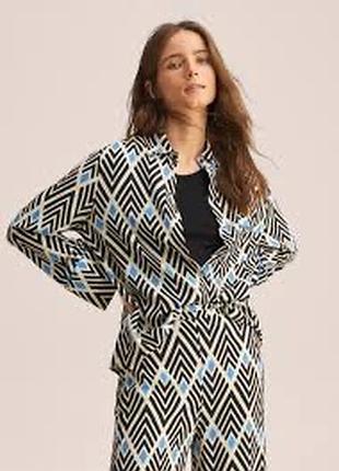 Сорочка вільного крою з геометричним принтом Бірка зі складом зрізана Стан ідеальний Розмір М Півобхват грудей - 54 см Довжина рукава від горловини - 73 см Довжина -70 см