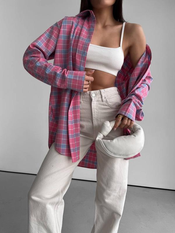 Тканина: італійська сорочкова фланель ; Колір: шоколад, рожевий Розмір: 42-48 Довжина 80 см Довжина рукава 62см Ширина 59 см