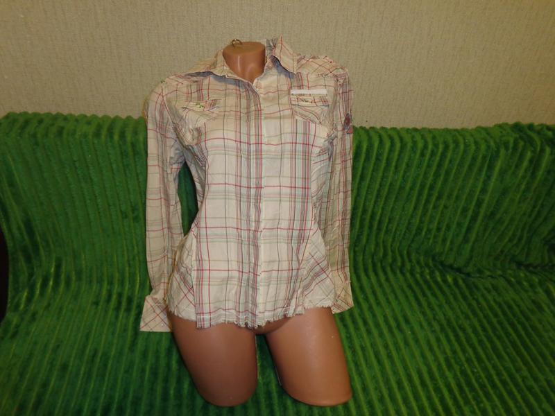 Цікава сорочка бежева в клітинку розмір євро 14, 42, стан ідеалу, виміри на фото