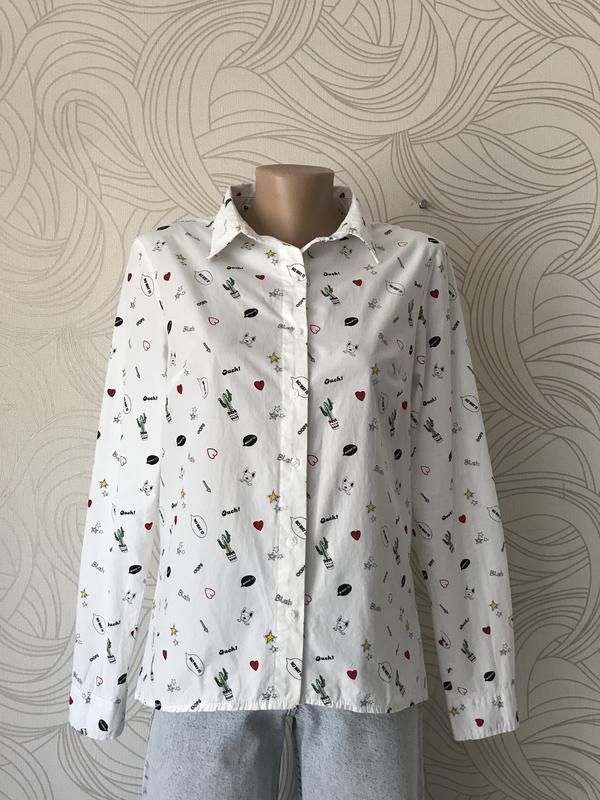 Стильна сорочка з крутим принтом «Laura Torelli» Бавовна Будь ласка, виміри: Довжина перед 60 см Довжина ззаду 70 см Довжина рукава 63 см НОГ 49 см НОС 49 см Поїжі 41 см