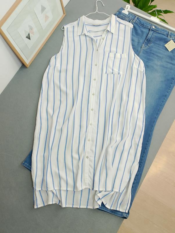 Довга сорочка туніка з віскози без рукавів літня літо біла в смужку великого розміру батал...