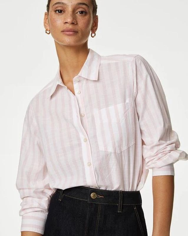 Жіноча смугаста сорочка з чистої бавовни marks & spencer, нова